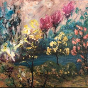 I eat , sleep & dream art & so when creating, stepping into my Dreamtime, it’s all about what I feel & see in my mind. This would be my magical garden in my fantasy world.